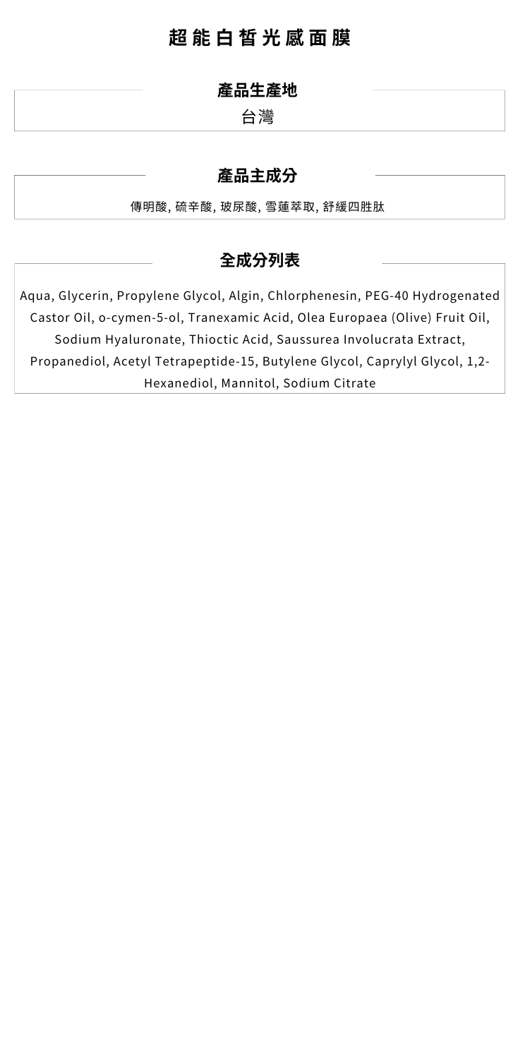美白修護舒緩 All in one 的科技面膜: 專業肌膚檢測儀器驗證,各種膚質、醫美後可用。