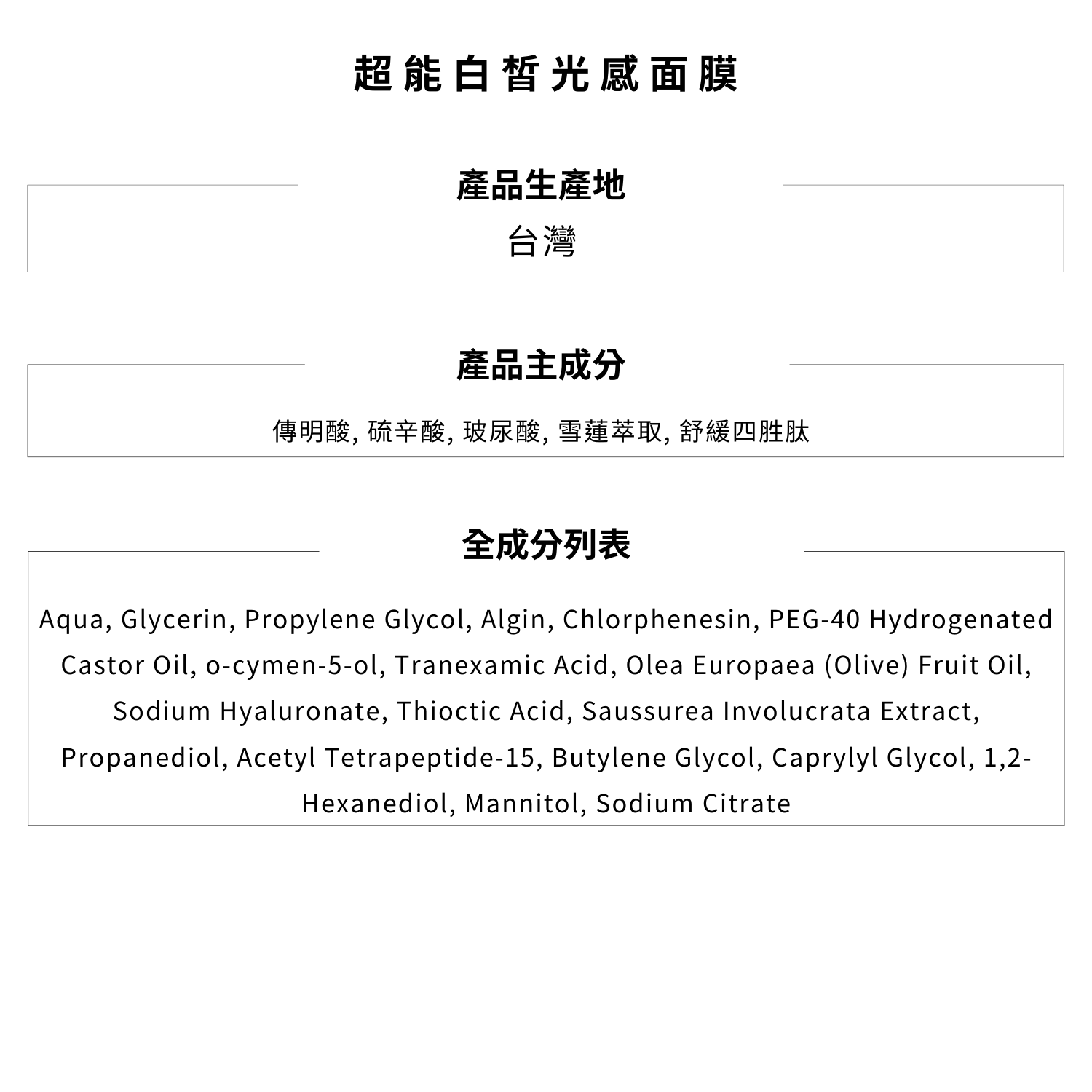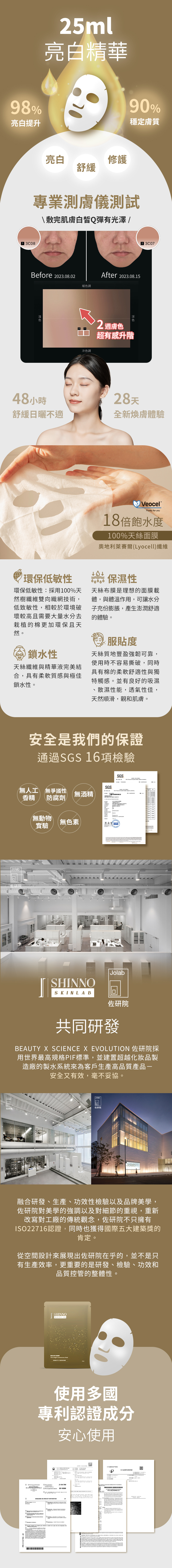 美白修護舒緩 All in one 的科技面膜: 專業肌膚檢測儀器驗證,各種膚質、醫美後可用。