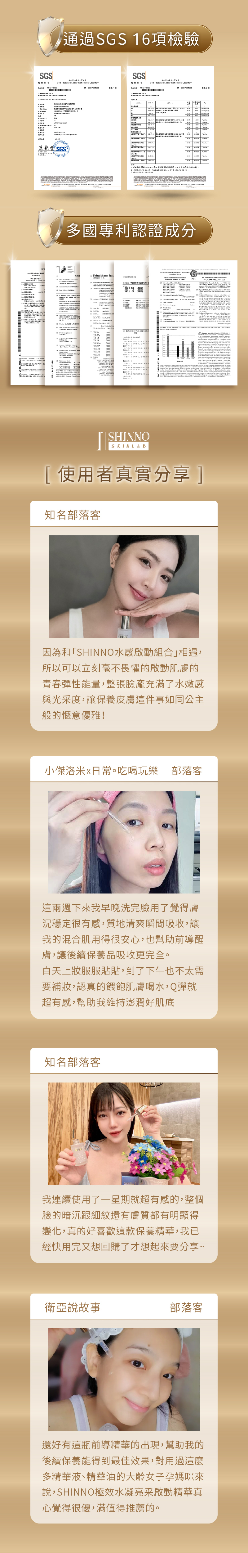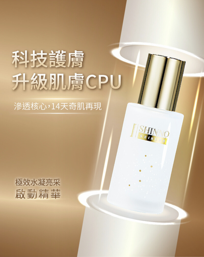 套組內容: SHINNO 極效水凝亮采啟動精華X1+極潤修護水感面膜3入組X1+超能白皙光感面膜3入組X1